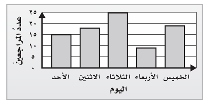 يبين التمثيل التالي أعداد المراجعين لإحدى العيادات الطبية. أي الجمل الآتية صحيحة؟