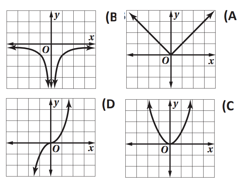أي المنحنيات الآتية تمثل دالة، ويمثل معكوسها دالة أيضا