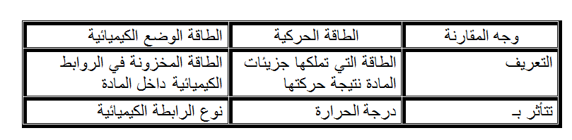 قارن بين الطاقة الحركية للجزيئات وطاقة الوضع الكيميائية .