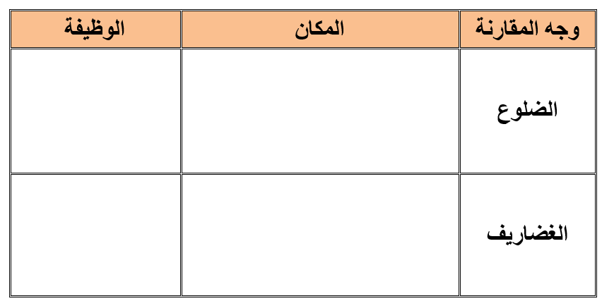 قارن بين الضلوع والغضاريف من حيث المكان والوظيفة