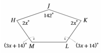 ما قياسات جميع الزوايا الداخلية للخماسي المجاور
