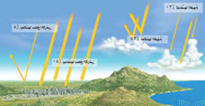 من خلال الشكل التالي كم يعكس ويمتص سطح الأرض من أشعة الشمس التي تسقط عليه؟