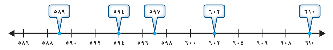 مستعملا خط الأعداد المجاور قارن بين ِ العددين 589 و 610
