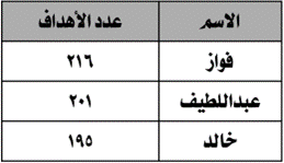 تفوق فواز على خالد بمقدار 216 - 195 = 21 هدف