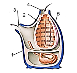 أ- مكان الذيل: يوجد داخله أجزاء من الجهاز الهضمي وتقع فتحة الشرج في نهايته